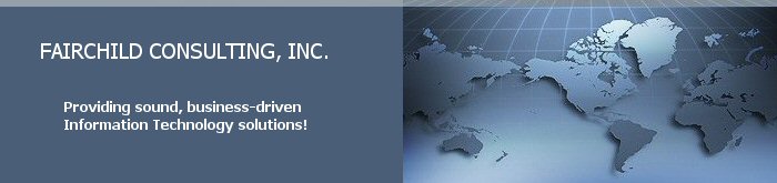 Fairchild Consulting, Inc. takes a practical, cost-effective approach to technology solutions.  We believe technology should be an enabler for your business - not the driver.  You can be assured your solution is business driven and not just expensive technology for the sake of technology!  Unless of course, that is what you want.